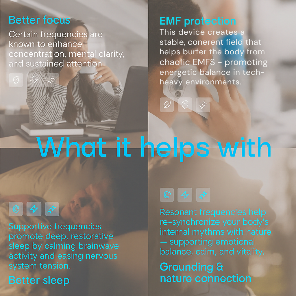Every setting corresponds to a real, physical frequency that interacts with water molecules, nervous system signals, and even electromagnetic balance in your space.